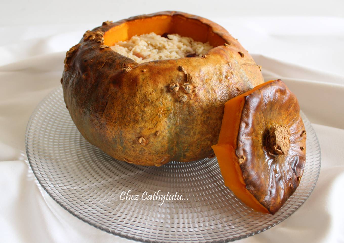 Vérifier l'assaisonnement du riz puis garnissez l'intérieur de la courge et bien tassez. Mettre le chapeau.