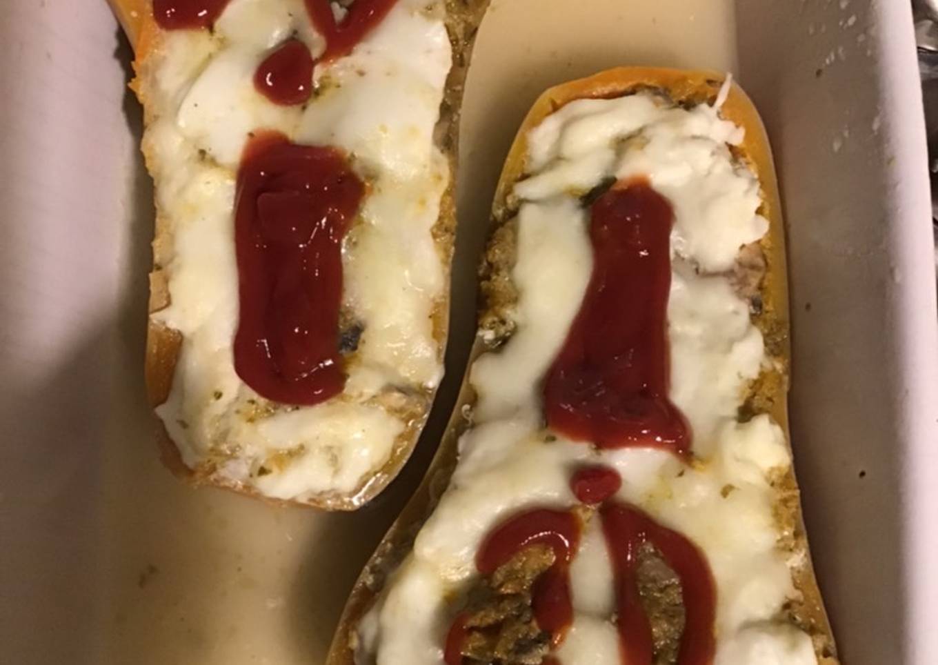 Courge butternut « scream » Halloween farci champignons pesto mozzarella et tomate
