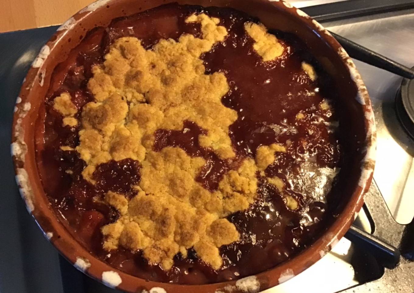 - Verser les fruits dans un plat à four couvrir de la pâte à crumble et enfourner pour 30 minutes