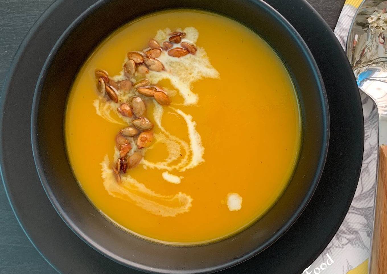 @4PassionFood is something that I have loved my whole life. They're nice and they look wonderful.|They are nice and they look fantastic. Soupe de potiron, safran et orange avec des graines de courge caramélisées