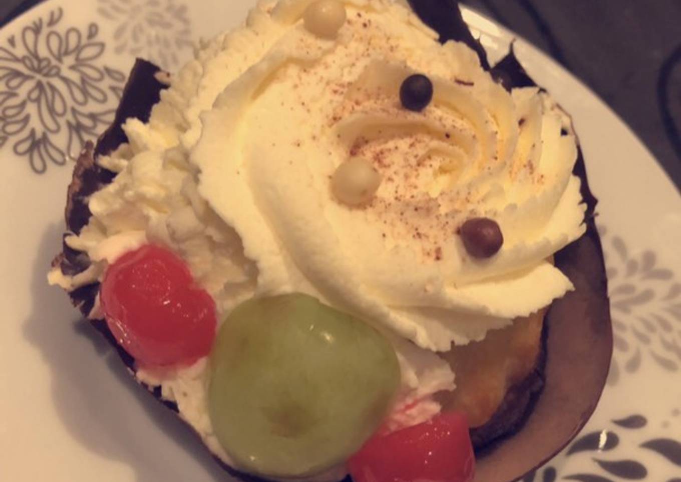 - Placer un rond de chantilly dans la coquille, déposer le baba dedans. Remplir le centre du gâteau de coulis et décorer de chantilly le dessus et côté selon les envies. Placer quelques fruits et vos décorations en chocolat. C’est prêt
