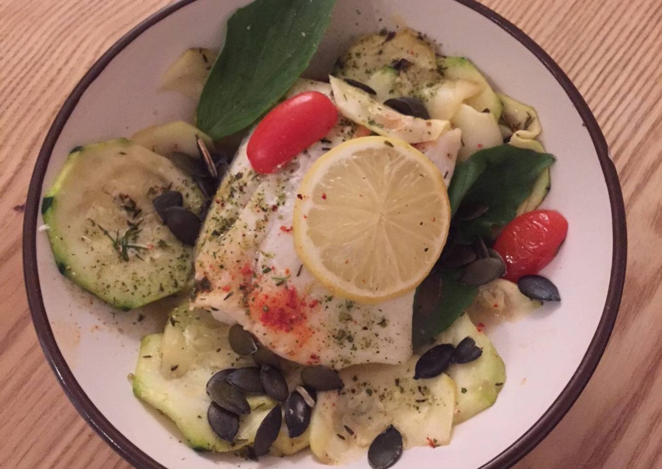 Hello everybody, I hope you're having an amazing day today. Today, I'm gonna show you how to prepare a special dish, Dos de cabillaud sur un lit de courgettes & basilic frais. It is one of my favorites food recipes. For mine, I'm gonna make it a bit unique. This will be really delicious.
