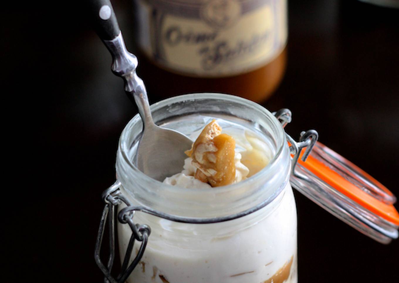 - Préparer un caramel avec du sucre roux, une noix de beurre, un peu de jus de citron puis y ajouter des spéculoos (qui vont fondre).