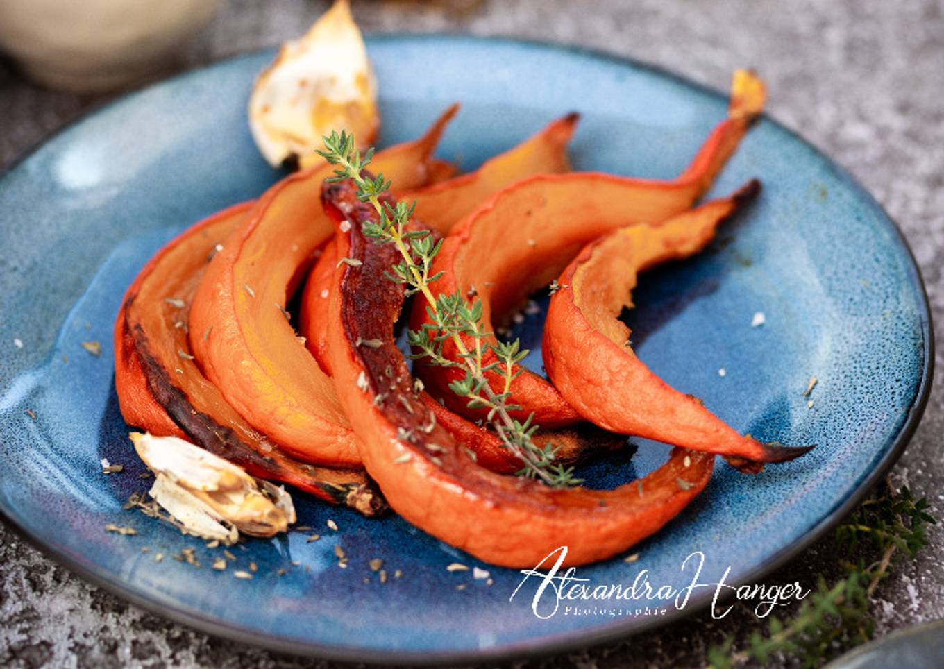 Potimarron rôti au thym et au miel