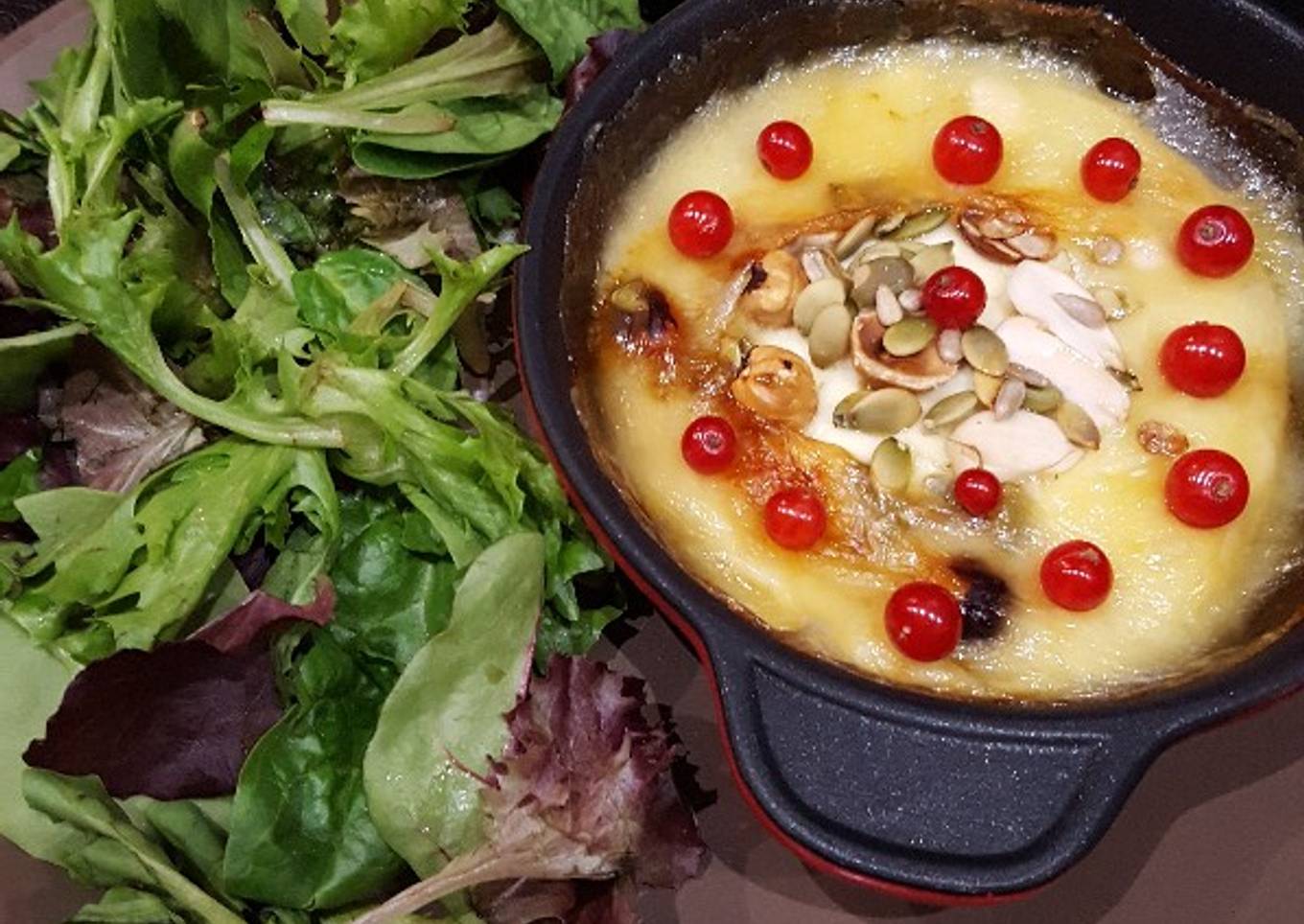 - Décorer avec des groseilles er servez avec une salade! Prévoyez une bonne baguette de pain frais. Régalez vous bien !